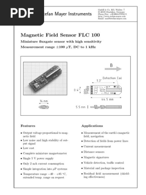 The magnetic fleld sensor flc 100 is a miniature uxgate magnetometer with high resolution for the measurement of weak magnetic flelds up to 100 t.